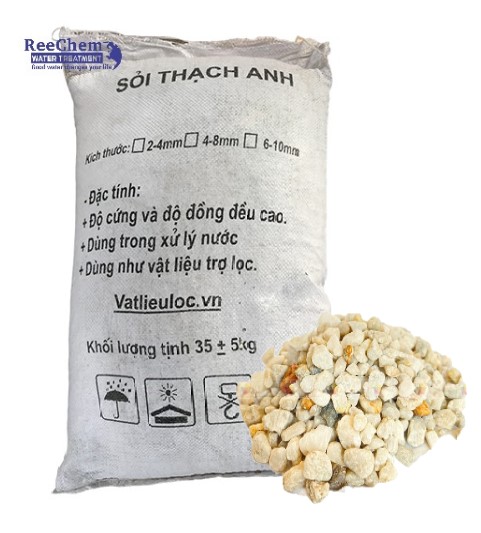 - Reechem đã cung cấp sỏi thạch anh lọc nước nhiều kích cỡ hạt phổ thông như: Size 2 - 4 mm, 3 - 5 mm, 4 - 8 mm, 5 - 10 mm, 10 - 20 mm, 20 - 40 mm… và theo đơn đặt hàng, công trình. Sỏi thạch anh lọc nước hay còn gọi là sỏi đỡ lọc nước, là một loại vật liệu lọc nước cùng kết hợp với các loại vật liệu khác như cát thạch anh lọc nước, mangan, than hoạt tính… có tác dụng lọc các thành phần lơ lửng có kích thước nhỏ không kết tủa tự nhiên được trong nguồn nước.