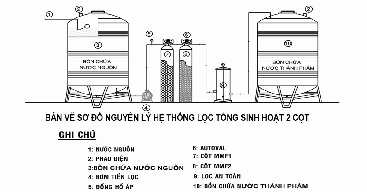Cấu tạo hệ lọc tổng sinh hoạt.