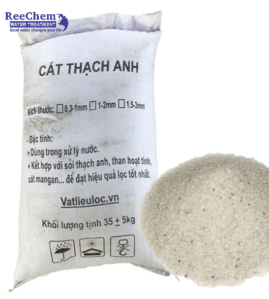 - Reechem cung cấp các dòng cát thạch anh lọc nước với đầy đủ size hạt 0.5-1.0mm; 0.8-1.2mm; 1.0-2.0mm; và các size hạt khác theo yêu cầu của khách hàng. Cát thạch anh lọc nước là loại vật liệu lọc nước được sử dụng khá rộng rãi hiện nay không chỉ bởi hiệu suất mà còn về giá thành. Hợp chất chính của cát thạch anh là SiO2 (Silic dioxit), là một hợp chất oxy hóa.