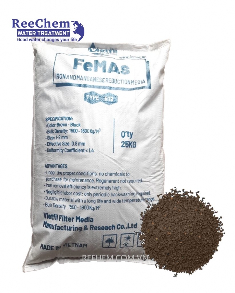 Cát Mangan FeMAs có thành phần chính là quặng mangan tự nhiên, được xử lý để tăng cường khả năng xúc tác oxy hóa. Sản phẩm giúp loại bỏ hiệu quả các kim loại hòa tan như sắt và mangan, đồng thời giảm thiểu các chất gây ô nhiễm nguy hiểm như asen trong nước, đảm bảo nguồn nước sạch và an toàn cho sinh hoạt hoặc sản xuất.