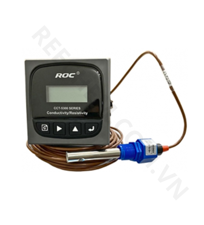 Đồng hồ đo độ dẫn EC/TDS/Điện trở suất Mặt vuông cao cấp- ROC CCT-5320E. Vỏ điện cực SS304, Rắc co điện cực SS304