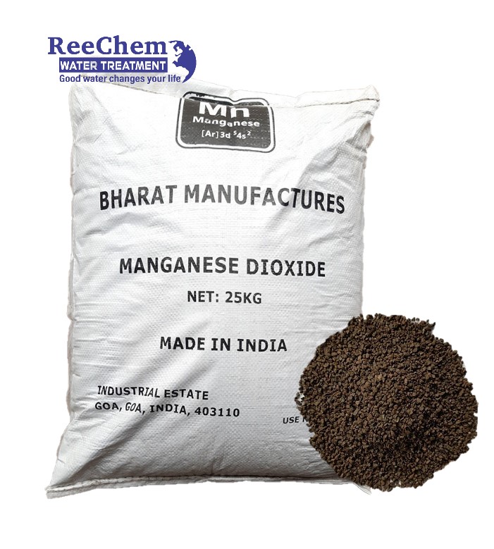 Hạt mangan Bharat có thành phần chính là MnO₂ (oxit mangan), đóng vai trò như một chất xúc tác giúp oxy hóa sắt, mangan, hydro sulfua (H₂S) trong nước, chuyển đổi chúng thành dạng kết tủa dễ dàng loại bỏ qua quá trình lọc. Sản phẩm có độ bền cao, ít bị bào mòn, không tan trong nước và hoạt động ổn định trong thời gian dài.