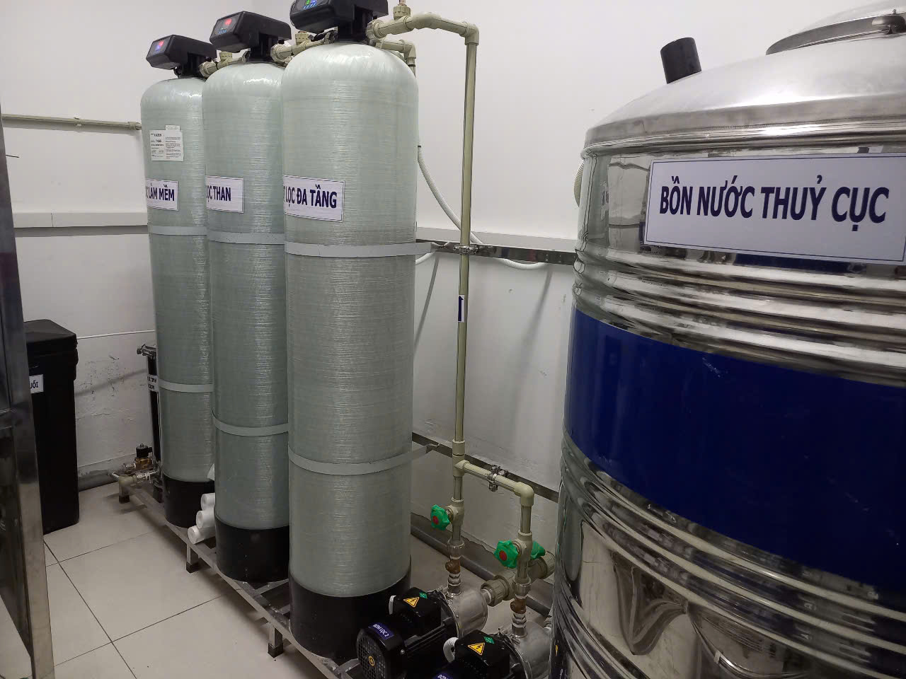 • Nước cứng (nhiều cặn trắng): Cần bổ sung cột làm mềm nước với hạt Cation.