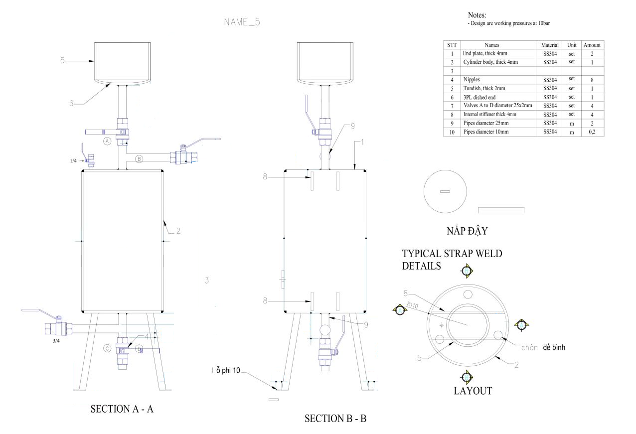 Bình áp lực: bằng inox 304, dung tích phổ biến 15–30–50 lít.